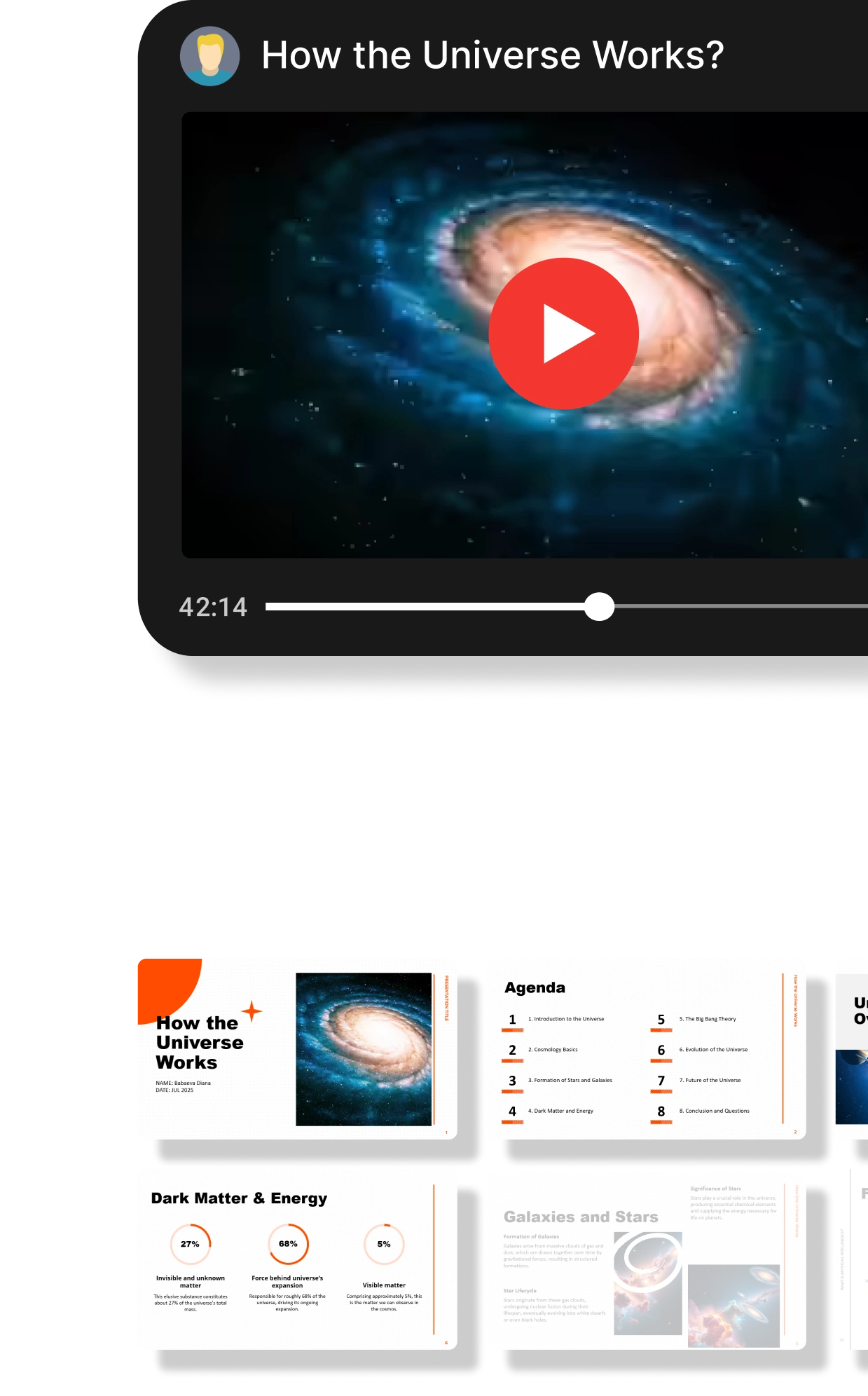 Twistly captures ideas, highlights key moments, and organizes them into concise slides with supporting text and images, giving you a polished deck in minutes.