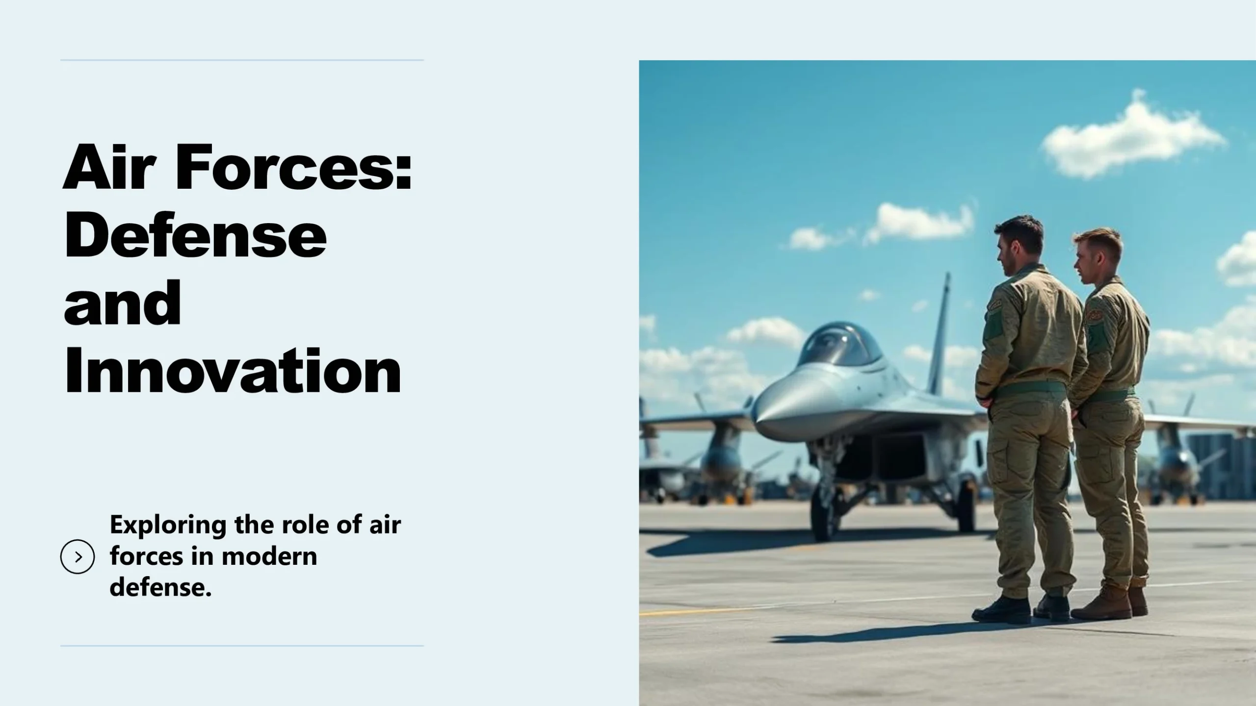 Air Force PowerPoint template with modern layouts designed for aviation, aerospace, or defense strategy presentations.