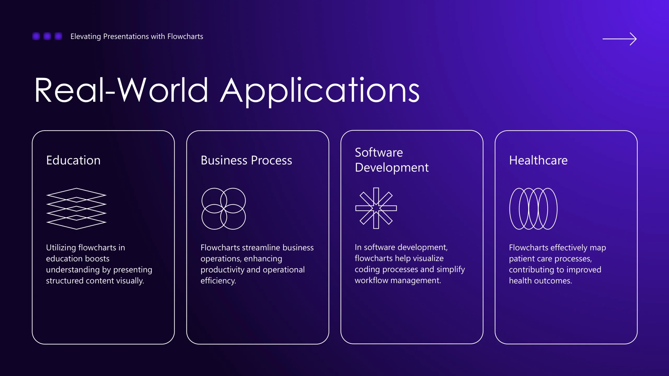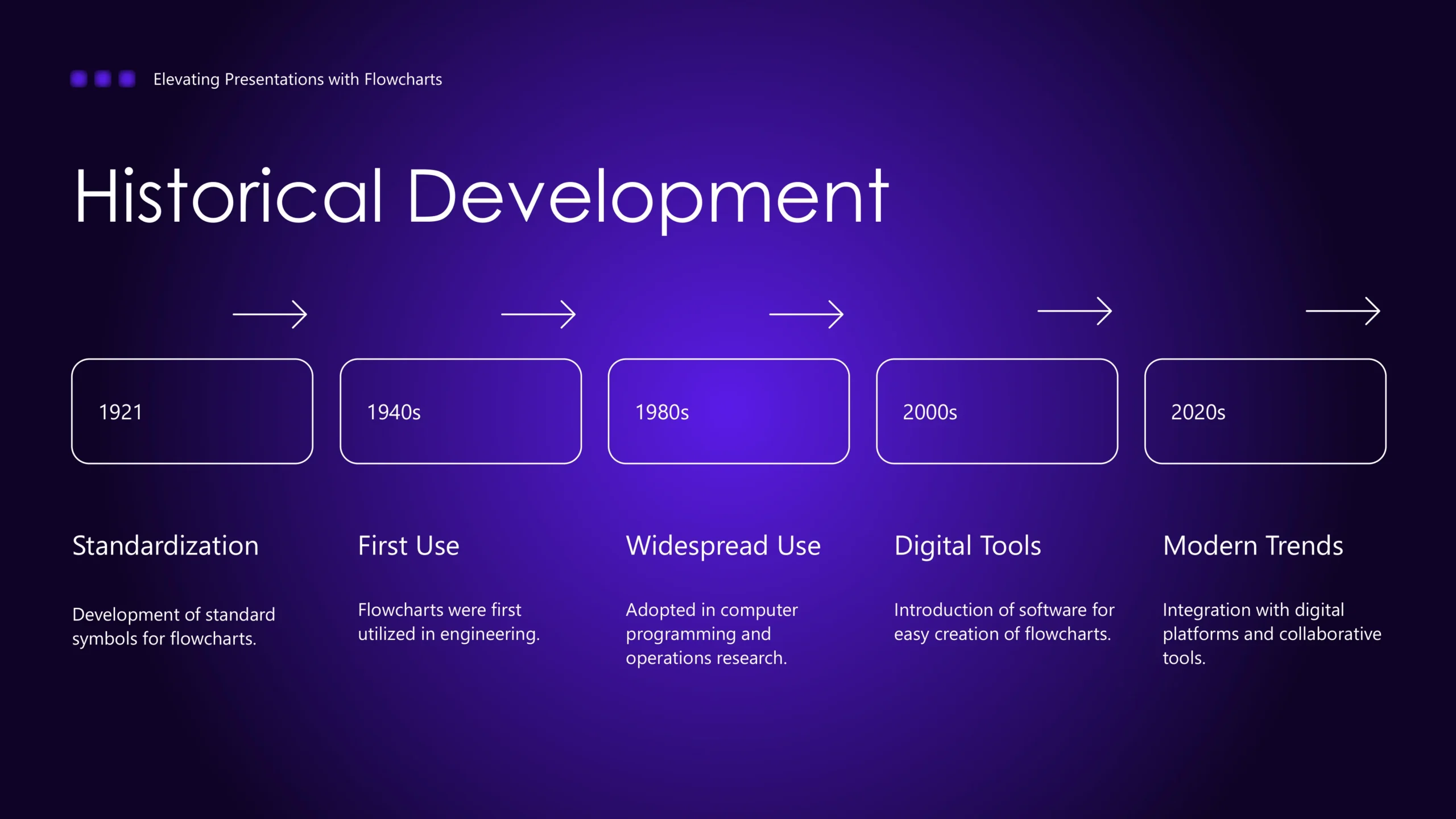 Flowchart PowerPoint template with structured layouts suited for processes, workflows, or project presentations.