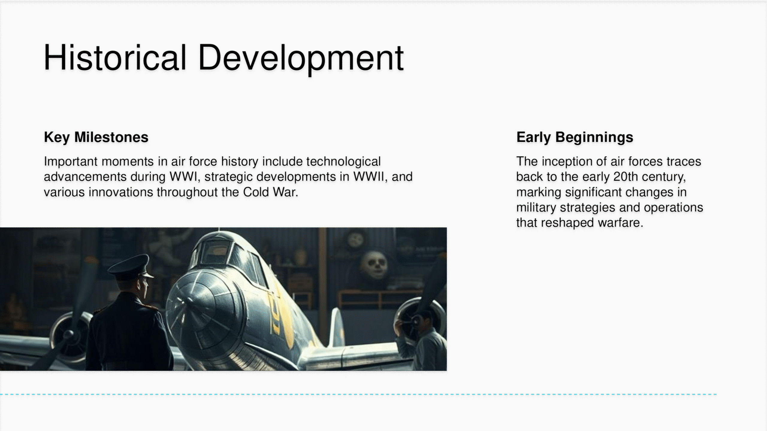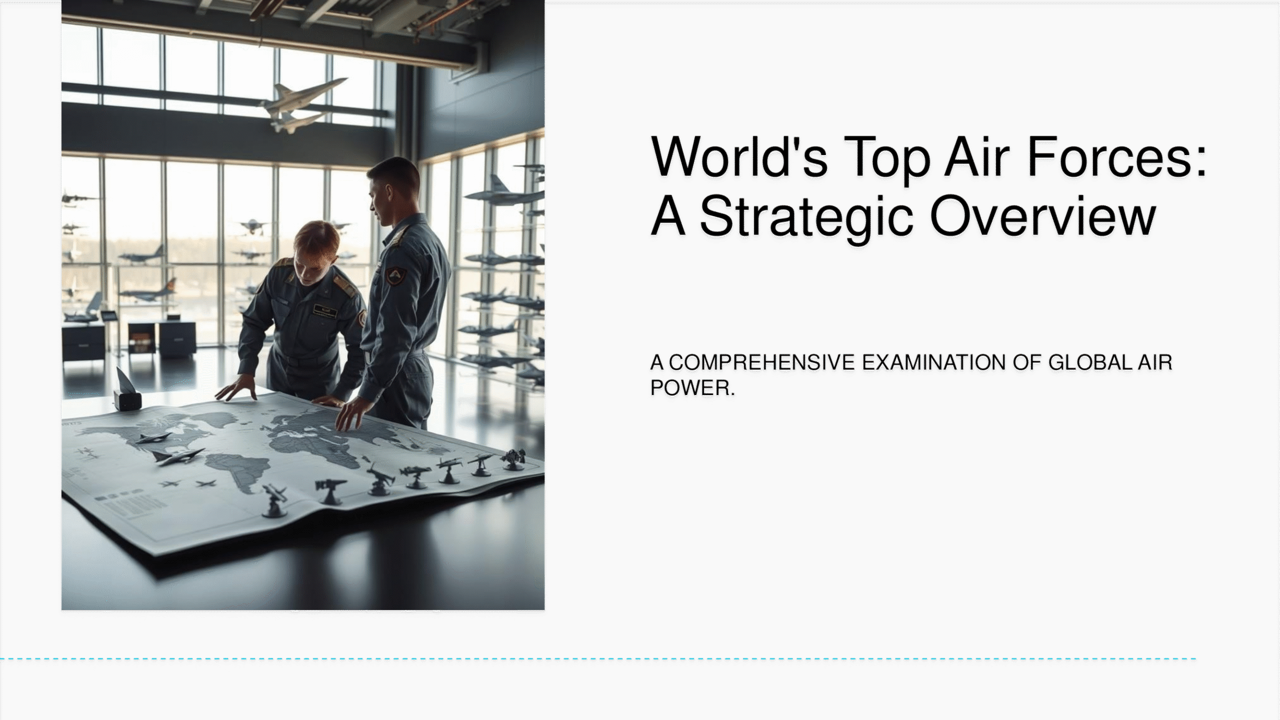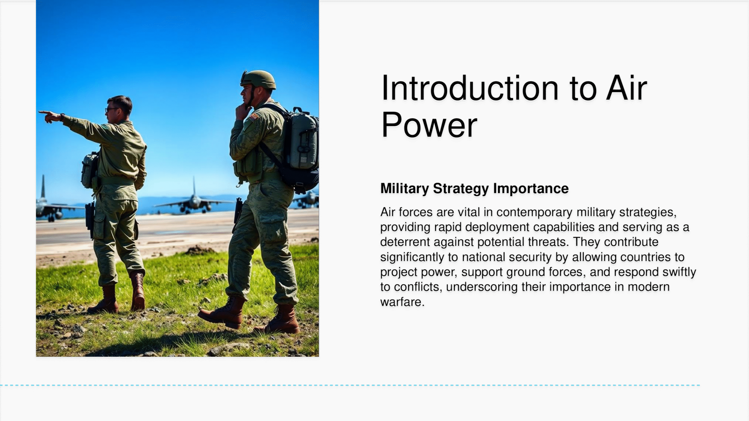 Air Force PowerPoint template with modern layouts designed for aviation, aerospace, or defense strategy presentations.