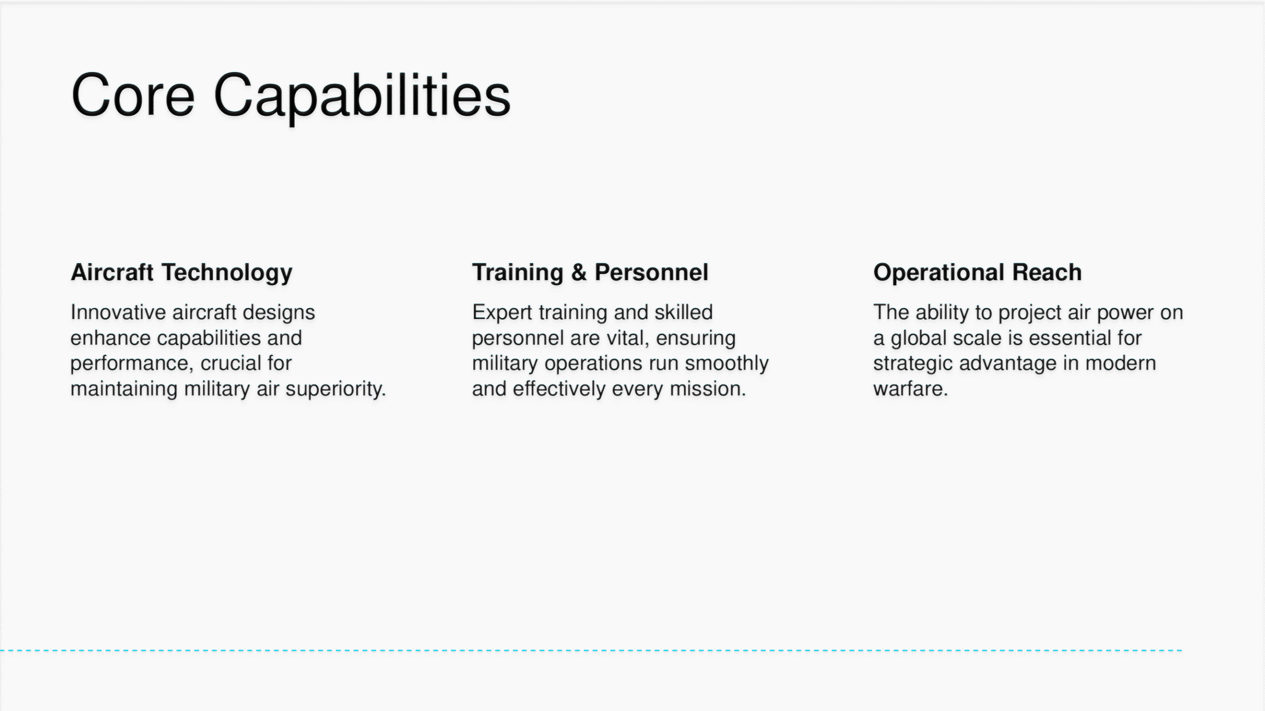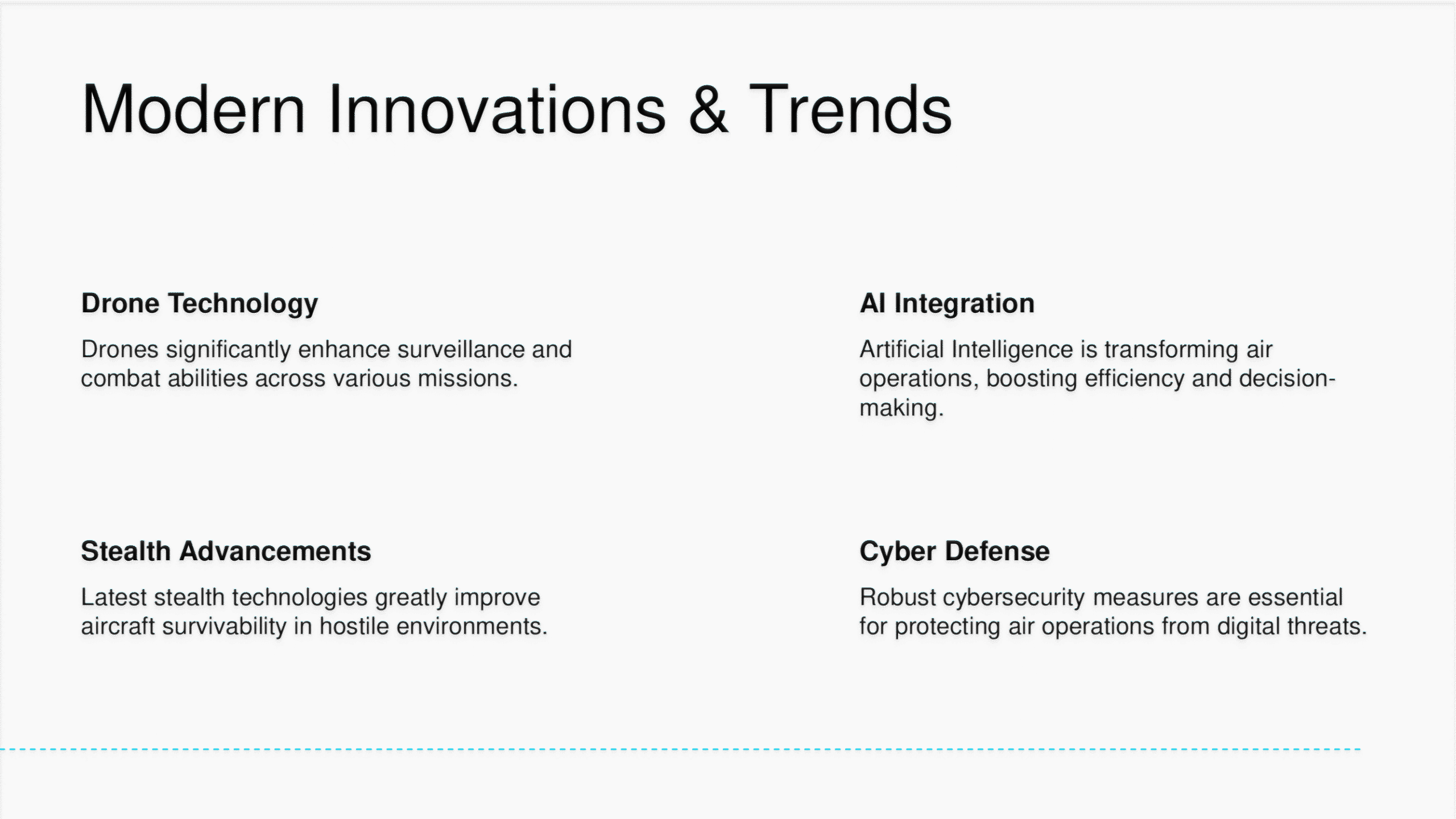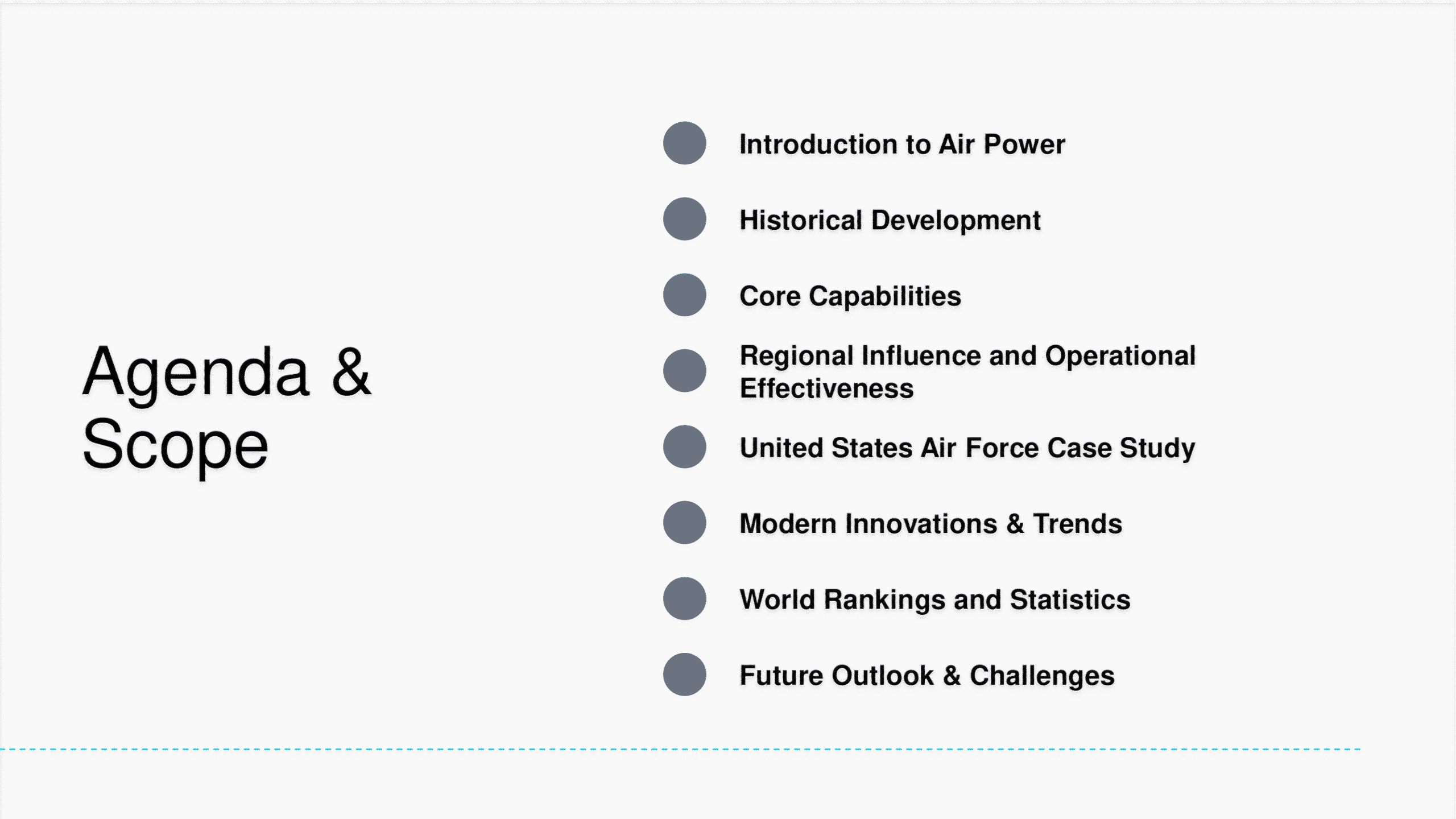 Air Force PowerPoint template with modern layouts designed for aviation, aerospace, or defense strategy presentations.