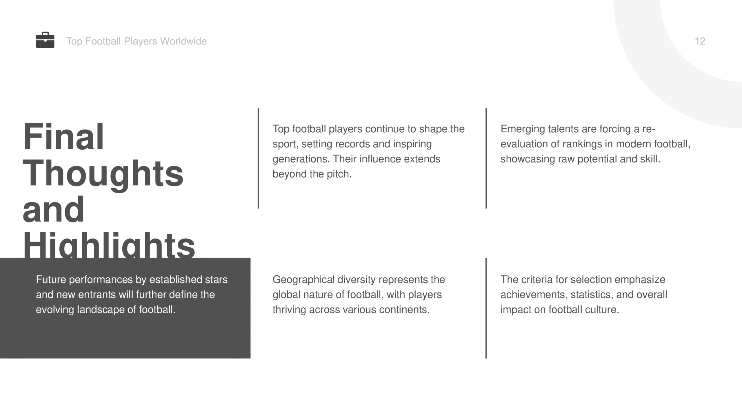 The Football PowerPoint template brings energy and bold visuals to sports-related presentations. With dynamic layouts and engaging graphics, it’s ideal for team meetings, game strategies, event promotions, or school projects. The professional yet sporty design ensures your message stands out while keeping the audience engaged. Easy to customize and consistently styled, this template is perfect for coaches, athletes, and sports enthusiasts.